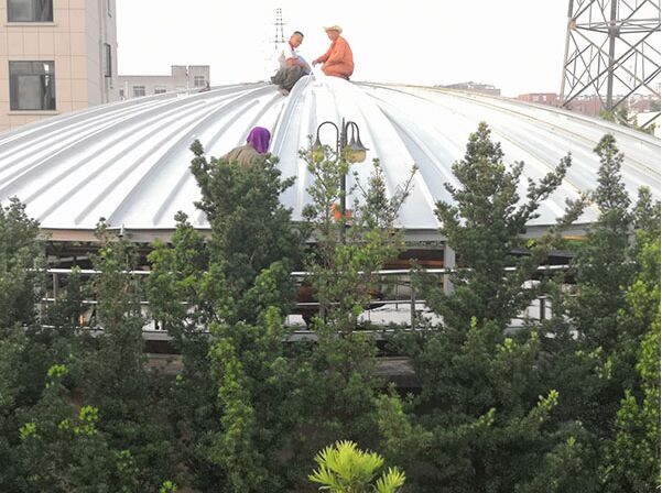 此方案除了固定于池沿上的膨脹螺栓外,不需任何金屬材料(每兩片法蘭連接處用鍍鋅螺栓緊固,間距200nrn),從而減少了金屬材料的防腐處理量,玻璃鋼防腐性能好,強度高,工程壽命長,安全可靠,并具有抗風載、抗雨雪載性能好的特點。拱形玻璃鋼加蓋包括拱形蓋板和側蓋板及連接、固定件等部分。拱形蓋板主要密封面積依據現場。